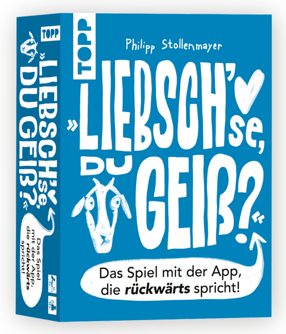 Im kooperativen Quizspiel Liebsch'se Du Geiß? ist nichts so, wie es scheint. Auf den 110 liebevoll illustrierten Karten stehen die Antworten bereits - doch nur wer sie richtig liest und in die, über einen QR-Code erreichbare Web-App spricht, erlebt die überraschende Auflösung: Die App spielt die Stimmen der Spielenden rückwärts ab und enthüllt, was sie gerade gesagt haben. Das sorgt für spontane Lacher, Icebreaker-Momente und unvergessliche Runden bei Geburtstagen, Familienabenden oder Spiele-Nights mit Freund:innen.