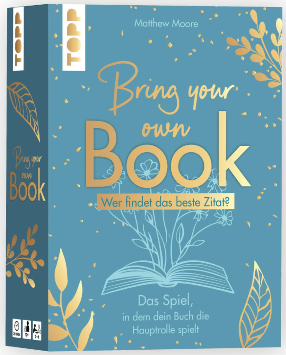 Bring your own Book - Der Name ist Programm! Die Spielenden bringen ihr aktuelles Lieblingsbuch mit zum nächsten Spieleabend und entdecken das innovative Partyspiel, das Buchliebhaber:innen und kreative Köpfe gleichermaßen begeistert. In jeder Runde wird eine Situation vorgelesen, und die Spielenden müssen die passendste Stelle aus ihrem Lieblingsbuch auswählen und vorlesen. Die humorvollen und unerwarteten Kombinationen sorgen für Lacher und spannende Diskussionen. Ideal für Spieleabende, Literaturkreise oder als Geschenk für Leseratten. Sie finden gemeinsam heraus, welches das beste Buch für jede Lebenslage ist!
