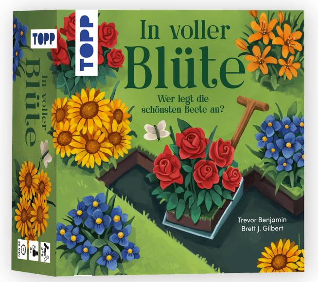 In In voller Blüte pflanzen die Spielenden farblich passende Blumen, locken Schmetterlinge als Bonus und sammeln Punkte mit cleveren 4er-Kombinationen. Durch einfache Regeln und schnellen Spielfluss kommt nie Langeweile auf, denn alle spielen gleichzeitig. Sie überlegen, wie sie ihre Blumen in den wertvollen 4er-Kombinationen legen können. Doch Achtung, die verbleibenden Karten geben sie an ihre Mitspielenden ab - und denen wollen sie natürlich nicht zu viele Punkte zuflattern lassen. Wer kreiert das schönste Beet und gewinnt das Spiel?