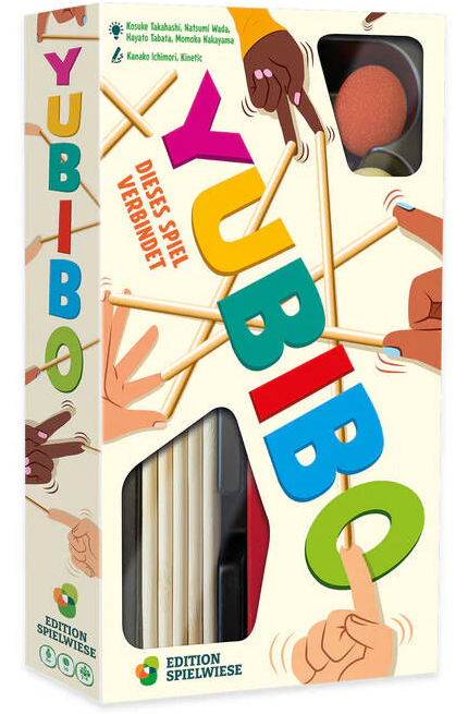 YUBIBO ist ein kooperatives Geschicklichkeitsspiel, das die Spielenden nur mit ihren Fingern, Stäbchen und Bällen spielen können. Wenn sie am Zug sind, ziehen sie eine Karte. Diese zeigt ihnen mit welchem Finger der Mitspielenden sie das nächste Stäbchen verbinden müssen! Können sie alle Stäbchen hochhalten, ohne dass sie auf den Tisch fallen, und damit der Schwerkraft trotzen? Sie können die Herausforderung erhöhen, indem sie versuchen, Bälle auf die Stäbchen zu legen. Nur wenn sie sich gut absprechen und alles in Balance halten, schaffen sie das gemeinsam!