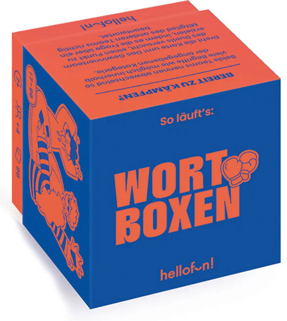 Die Spielenden wählen in Wort Boxen die Seite, die zu ihrem Ort passt. JEMAND: Leute an Flughäfen, Bahnhöfen oder im Freien zu beobachten, war noch nie so lustig! ETWAS: Kreativ und ideal für kleinere Räume - im Zug, Auto, Bus.