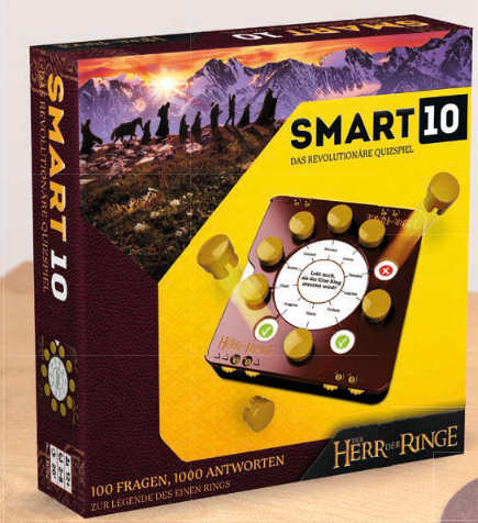 Diese SMART 10: Der Herr der Ringe Sonderausgabe entführt in die fantastische Welt der Hobbits, Elben und Orks. Wer weiß am besten über Mittelerde, seine Bewohner*innen und den Einen Ring Bescheid? Das Spiel wird es zeigen. Gespielt wird nach dem bekannten und bewährten SMART 10 Spielprinzip. Die praktische Smartbox beinhaltet alles, was zum Spielen benötigt wird: Quizkarten mit 100 Fragen und jeweils 10 Antwortmöglichkeiten, Punktezähler und Antwortmarker.