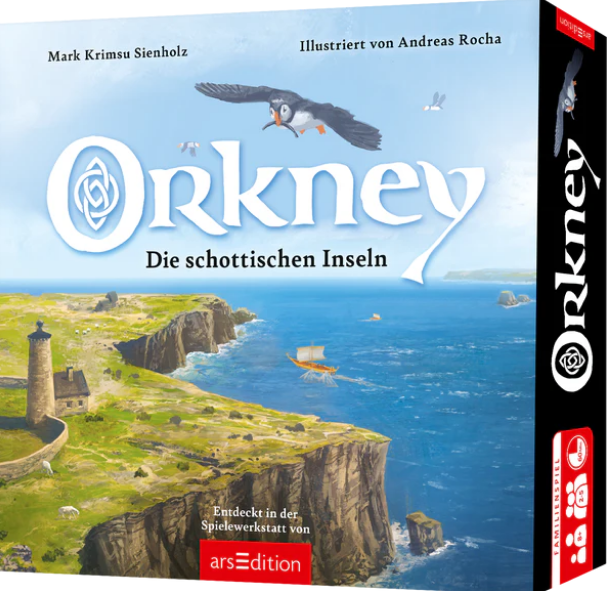 Der Verlag arsEdition wird in diesem Jahr das Spiel Orkney von Mark Krimsus Sienholz veröffentlichen. Die Illustrationen stammen von Andreas Rocha
