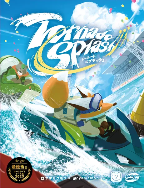 Die Spielenden sorgen für Furore in Tornado Splash, dem rasanten Jetski-Rennspiel mit hohem Einsatz! Die Spielenden fahren mit ihren Rival*innen zur Ziellinie, indem sie Streckenkarten ausspielen, die Geschwindigkeit und Kontrolle ausbalancieren. Werden sie auf den Geraden davonbrausen oder die Kurven in engen Kurven meistern? Jede Kurve zählt. Falls sie zurückfallen, nur nicht gleich ausrutschen! Jede Person hat pro Rennen einen mächtigen Boost - sie wollen diesen im richtigen Moment nutzen, um die Führung zu übernehmen und die anderen hinter sich zu lassen.