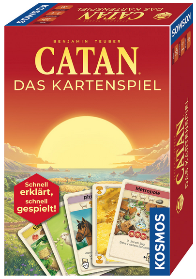 Mit CATAN: Das Kartenspiel erscheint ein neues Highlight aus der Welt von CATAN. Das Spiel bietet ein schnelleres Spielerlebnis als CATAN - Das Spiel, behält dabei jedoch das unverwechselbare CATAN-Feeling bei. Es verbindet Strategie, Handel und Abenteuer - nun in kompakter Form für alle, die das beliebte Spielprinzip in kürzerer Zeit erleben möchten.