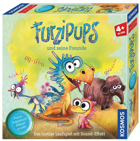 Furzipups, der kleine Knatterdrache aus dem bunten Drachental, bringt in Furzipups und seine Freunde mit seinen lauten Pupswolken jede Menge Spaß ins Spiel. Zusammen mit seinen Freunden Hicksi, dem mutigen Huhn, Rüdiger Rülps-Rüssel und dem feurigen Drachenmädchen Lulu liefern sich die Spielenden ein turbulentes Wettrennen. Mit dem Würfel bewegen sie ihre Figuren vor- oder zurück - und der besondere Sound-Knopf sorgt für extra Spannung: Er gibt eines der bekannten Furzipups-Pups-Geräusche von sich und bestimmt, welche Figur als Nächstes ziehen darf. So bleibt das Spiel immer voller Überraschungen.