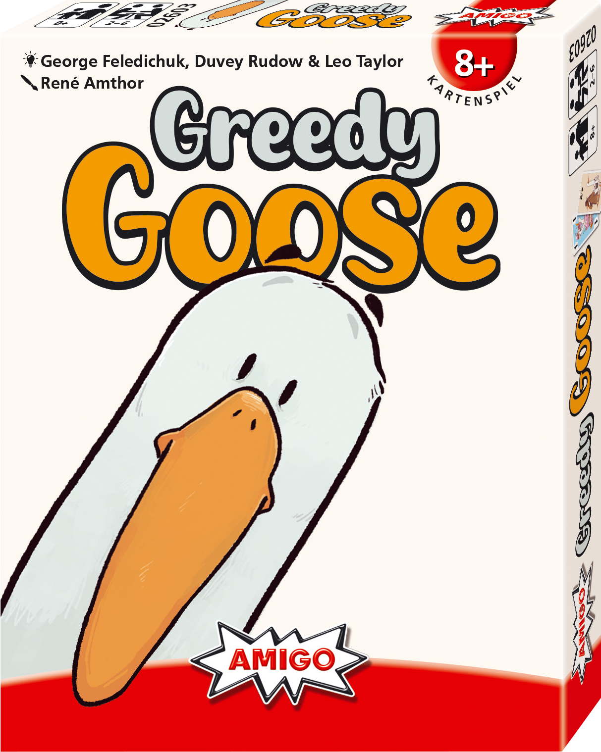So viele Leckereien liegen da! Bei dem Kartenspiel Greedy Goose schnappen sich die gierigen Gänse am Tisch so viel, wie in ihren Schnabel passt. Doch was zu viel ist, ist zu viel und auch die gierigste Gans hat irgendwann den Schnabel voll. Wer zu viele Snacks der gleichen Sorte sammelt, muss sie wieder abgeben und kann sie nicht mehr werten. Denn nur die Karten, die man am Ende noch auf der Hand hat, bringen Punkte.