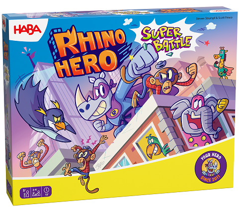 Rhino Hero hat seine Superhelden-Freunde mitgebracht! Diesmal werden nicht nur die wackeligsten Wolkenkratzer erklommen, sondern auch knallharte Battles ausgetragen. Wer sich von den Spider Monkeys nicht aus der Ruhe bringen lässt und mit ruhiger Hand und Würfelglück das höchste Stockwerk erreicht, gewinnt die Himmelsstürmer-Medaille in Rhino Hero Super Battle.