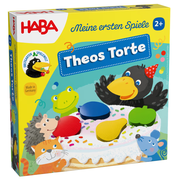 Rabe Theo hat Geburtstag! Seine Freunde backen im in Meine ersten Spiele: Theos Torte eine leckere Obsttorte. Fast ist sie fertig. Es fehlen nur noch ein paar Obstscheiben. Die Kinder helfen, diese zu finden und sie zur Torte zubringen. Dabei machen sie Tierbewegungen nach: krabbeln, hüpfen, flitzen oder schleichen. Doch Theo ist schon im Anmarsch. Schaffen es die Kinder die Obsttorte fertig zu belegen, bevor Theo sie erreicht?