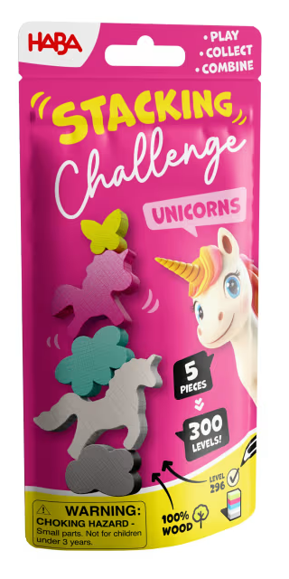 Grün auf Blau auf Pink - nichts leichter als das, oder? Bei der ultimativen Stacking Challenge: Unicorns, Vehicles oder Animals stapeln die Spielenden bis zu fünf kleine Holzteile in vorgegebener Reihenfolge aufeinander. Eine wackelige Angelegenheit, die von Aufgabe zu Aufgabe mehr Fingerspitzengefühl erfordert! Jede geschaffte Aufgabe können sie direkt auf dem beiliegenden Übersichtsblatt abhaken.