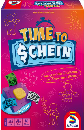 Jetzt heißt es gut abschätzen und keine Zeit verschwenden: Time to Schein ist ein kooperatives Partyspiel, bei dem Zeit wortwörtlich bezahlt wird. Gemeinsam stellt sich das Team verrückten, sportlichen oder kniffligen Herausforderungen und muss zuvor entscheiden, wie viele Sekunden es dafür benötigt. Der Clou: Der smarte Timer wird jede Runde mit Geldscheinen versorgt, welche der geschätzten Zeit entsprechen, bevor es heißt: Time to Schein!