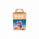 Box ist ein Roll&Write, in dem die Spielenden nach und nach Zahlen in das Raster auf ihrem Zettel eintragen. Dabei versuchen sie gleiche Zahlen nach Möglichkeit in Rechtecken und Quadraten zu gruppieren, denn dann können sie diese Zahlen in Boxen stecken und Punkte abkassieren. Sie beachten dabei die Sonderfelder, denn sie bringen ihnen jede Menge Bonuspunkte. Haben sie am Ende die meisten Punkte, gewinnen sie das Spiel!