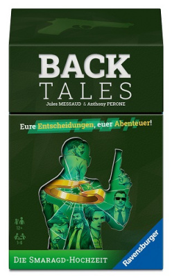 Back Tales: Die Smaragd-Hochzeit ist der zweite Teil der Mysteryreihe, bei der die Entscheidungen der Spielenden das Abenteuer aktiv beeinflussen. Mithilfe von Aktionskarten kann mit fiktiven Personen interagiert oder Gegenstände genutzt werden. Durch verschiedenen Enden kann das Abenteuer auch mehrmals bestritten werden. Jedes Mal lernen die Spielenden Neues dazu. Das Spielmaterial bleibt intakt und bietet immer wieder von neuem Spielfreude.