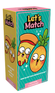 Im humorvollen Partyspiel Let’s Match versuchen die Spielenden und ihre Teampartner*in, das perfekte Paar zu werden. Anhand eines von hunderten spannenden Themen wählen sie dazu aberwitzige Bildkarten aus ihren identischen Kartendecks aus, von denen sie glauben, dass sie am besten zum Thema passen. Je ähnlicher ihre Auswahl ist, desto mehr Punkte bekommten sie. Was passt besser zum Thema „Albtraum“ als die traurige Braut - vielleicht doch das grinsende Clownsgesicht? Da sind Missverständnisse, Überraschungen und viele Lacher garantiert!