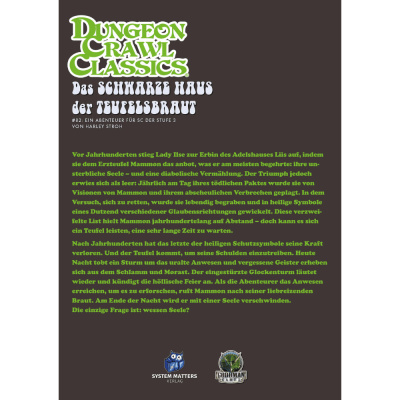 Nach Jahrhunderten hat das letzte der heiligen Schutzsymbole seine Kraft verloren. Und der Teufel kommt, um seine Schulden einzutreiben. Heute Nacht tobt ein Sturm um das uralte Anwesen und vergessene Geister erheben sich aus dem Schlamm und Morast. Der eingestürzte Glockenturm läutet wieder und kündigt die höllische Feier an. Als die Abenteurer das Anwesen erreichen, um es zu erforschen, ruft Mammon nach seiner liebreizenden Braut. Am Ende der Nacht wird er mit einer Seele verschwinden. Die einzige Frage ist: wessen Seele?