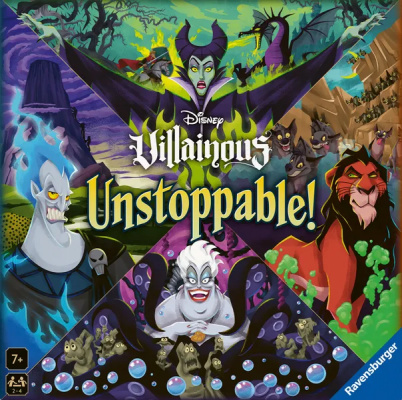 In Disney Villainous Unstoppable! schlüpfen die Spielenden in die Rolle eines von vier berühmten Disney-Bösewichten - Maleficent, Ursula, Hades oder Scar - und müssen ihre besonderen Fähigkeiten geschickt einsetzen, um ihren bösen Plan umzusetzen und die Pläne der gegnerischen Personen zu vereiteln. Genauer gesagt bewegen sich alle Spielenden auf einem gemeinsamen Spielbrett, das jedem Bösewicht ein eigenes Reich bietet. Indem sie die Aktionssymbole auf ihren Karten der Position auf dem Brett zuordnen, können sie Aktionen ausführen, um ihr Reich zu verbessern, den Plan voranzutreiben, eine gegnerische Person zu besiegen, eine Held*in zu besiegen und Macht zu erlangen. Zum Ende des Zuges füllen sie ihre Handkarten auf vier Karten auf. Wer als Erstes die vier Spielsteine ??für den bösen Plan einsammelt, gewinnt.