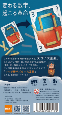 Mit Streichhölzern lässt sich der Wert der Karten verändern. Karten können mit beiden Seiten nach oben gespielt werden. So wird aus einer 6 eine 8, wenn man ein Streichholz hinzufügt, aus einer 6 eine 9, wenn man sie umdreht, und aus einer 1 eine F, wenn man sie umdreht und zwei Streichhölzer hinzufügt.
