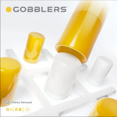 Das Ziel in Gobblers ist es, drei der Spielsteine der Spielenden ??in einer horizontalen, vertikalen oder diagonalen Reihe zu platzieren. Ihre Spielsteine ??können ineinander verschachtelt werden und beginnen das Spiel außerhalb des Bretts. In einem Zug spielen sie entweder einen Spielstein außerhalb des Bretts oder bewegen einen Spielstein auf dem Brett an eine beliebige andere Stelle, an der er passt. Ein größerer Spielstein kann jeden kleineren Spielstein überdecken. Ihr Gedächtnis wird auf die Probe gestellt, wenn sie versuchen, sich zu merken, welche Farbe einer Ihrer größeren Spielsteine ??verdeckt, bevor sie ihn bewegen. Sobald eine Person drei gleichfarbige Spielsteine ??in einer Reihe hat, gewinnt sie - mit einer Ausnahme: Wenn sie ihren Spielstein aufheben und einen gegnerischen Spielstein aufdecken, der eine Dreierreihe vervollständigt, verlieren sie nicht sofort; Sie können den Spielstein nicht an seinen Startplatz zurückbringen, aber wenn sie ihn über einen der beiden anderen gegnerischen Spielsteine ??in dieser Reihe platzieren können, geht das Spiel weiter.